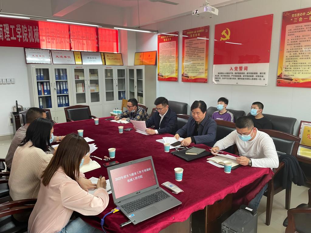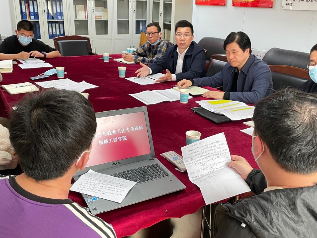 为深入贯彻落实党中央稳就业决策部署,促进2022届毕业生更充分更高质量就业,4月7日下午,太阳集团tyc539macau副董事长徐振祥、招就处处长喻运斌、副处长胡巍、刘理来到太阳集团tyc539macau开展就业工作专项调研。机械工程公司党委书记胡文静、副书记徐湛、毕业生辅导员王子嘉、就业专干刘尘轩和部分毕业生参加此次调研座谈会。