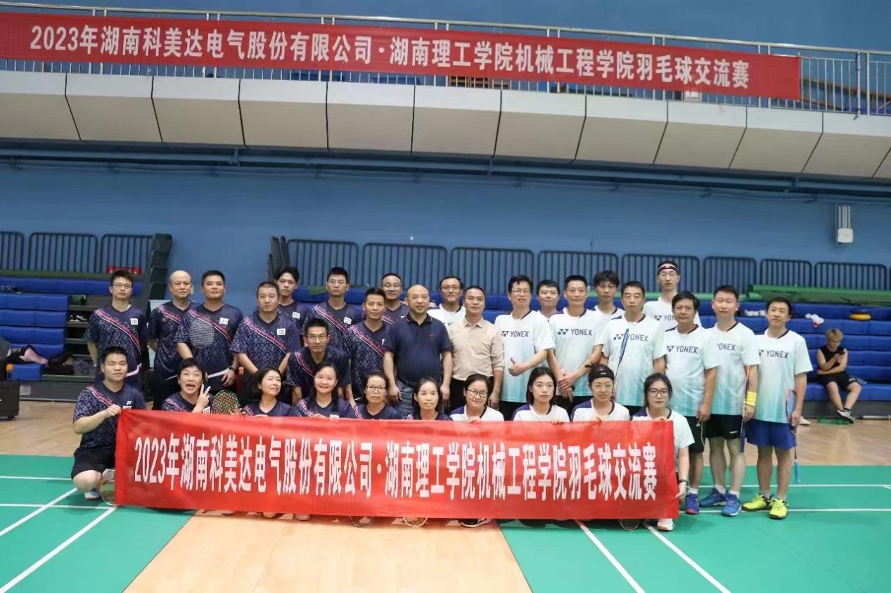 11月3日下午15:00至17:30,2023届羽毛球校企交流赛在太阳集团tyc539macau公司体育馆顺利举行。此次联赛由太阳集团tyc539macau与湖南科美达电气有限公司联合主办,湖南科美达电气有限公司职工与太阳集团tyc539macau师生所组成的羽毛球爱好者齐聚一堂,以球会友,展开了深入交流。