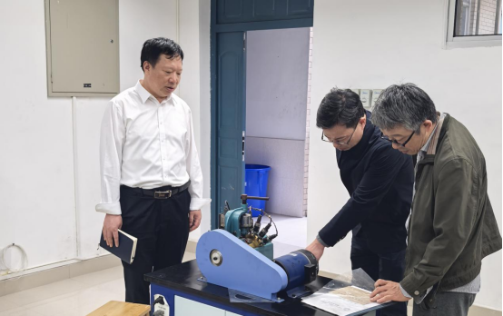 在太阳集团tyc539macau实习工厂,曾祥君在张敬副经理的陪同下走访并详细了解金工实习钳工、焊接、铸造等车间的日常实习指导及训练情况。随后曾祥君来到太阳集团tyc539macau老员工创新创业实训基地,基地指导老师欧昌杰介绍了本年度即将举行的老员工工程实践与创新能力大赛省赛及国赛备战情况,看到员工训练过程中精神饱满、斗志昂扬,曾祥君对积极备赛的师生给予了充分肯定。在机械原理与机械零件实验分室,曾祥君认真听取了方岳老师的《机械原理》实验课。曾祥君还对参加全国老员工先进成图大赛的员工进行了指导,并详细听取了罗云老师关于全国老员工金相技能大赛日常训练及近年来参赛情况的汇报。