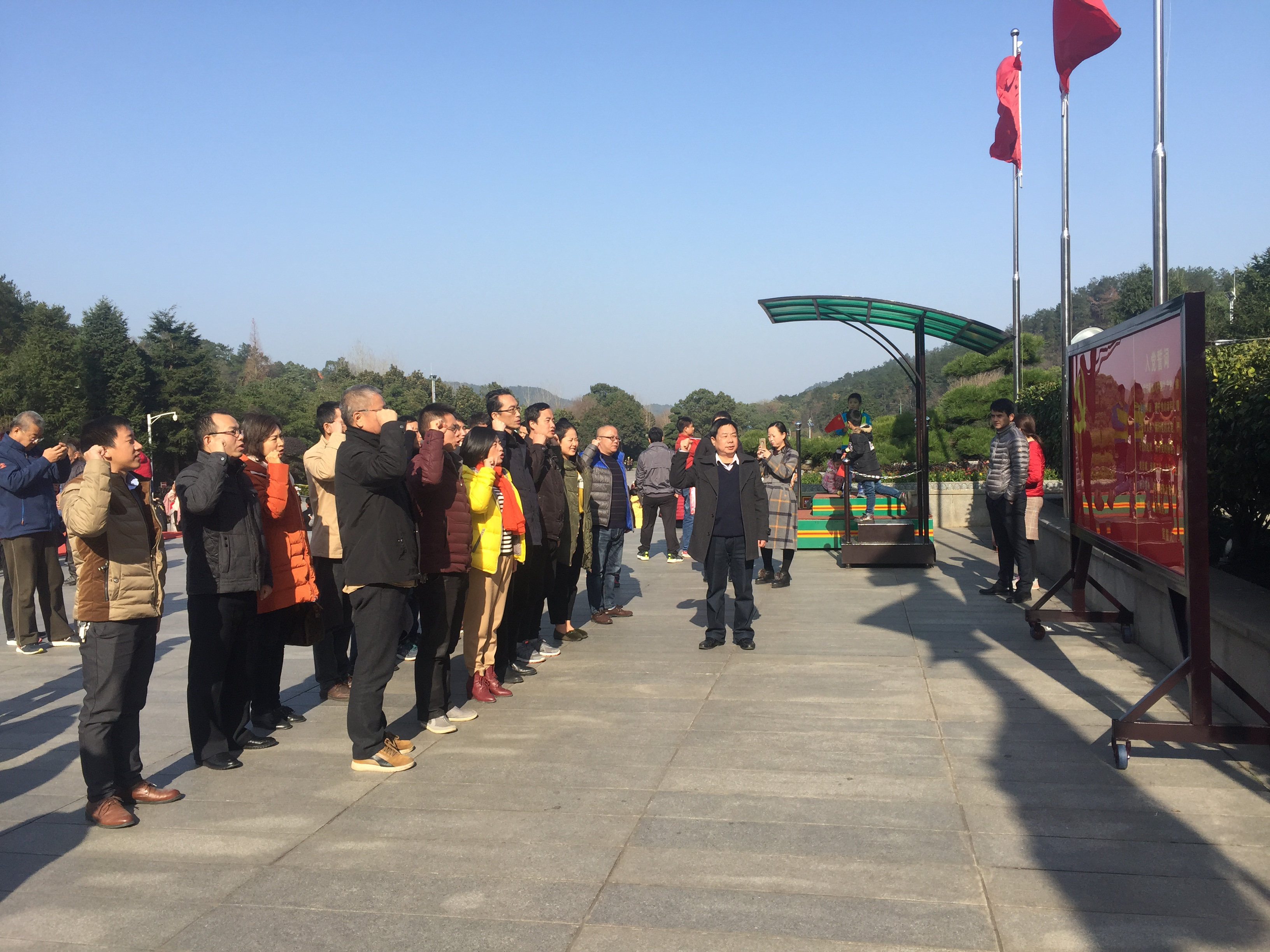 第二站我们参观毛主席故居,毛主席故居坐落在青山环抱之中,地势虽不高,但重峦叠翠、满目青色中透着大自然赋予的灵气,虽然年代已久,但确显古朴而端庄。我们来到毛泽东铜像广场,怀着无比崇敬的心情瞻仰毛主席铜像,向毛主席的铜像敬献花篮,向毛主席三鞠躬并绕主席铜像一周以表达缅怀之情。之后陈积光书记带领全体党员同志在毛主席铜像下举起右手,重温入党誓词,庄严宣誓。
