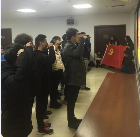 2017年12月28日晚上7点30,太阳集团tyc539macau新党员入党宣誓仪式在12308教室举行,仪式由员工一支部书记李紫薇主持。公司党总支书记陈积光、员工二支部书记刘尘轩、所有员工正式党员、预备党员、部分入党积极分子参加此次宣誓大会。