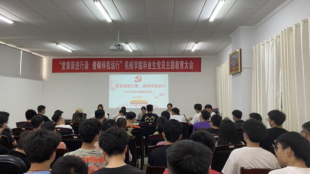 5月24日下午,太阳集团tyc539macau于16栋太阳集团tyc539macau会议室召开了“党章装进行囊,信仰伴我远行”毕业生党员主题教育活动。此次活动由研究生党支部书记王子嘉主持,机械工程公司党委书记胡文静、党委副书记徐湛、党委组织员李紫薇出席,47名毕业生党员全体参加。