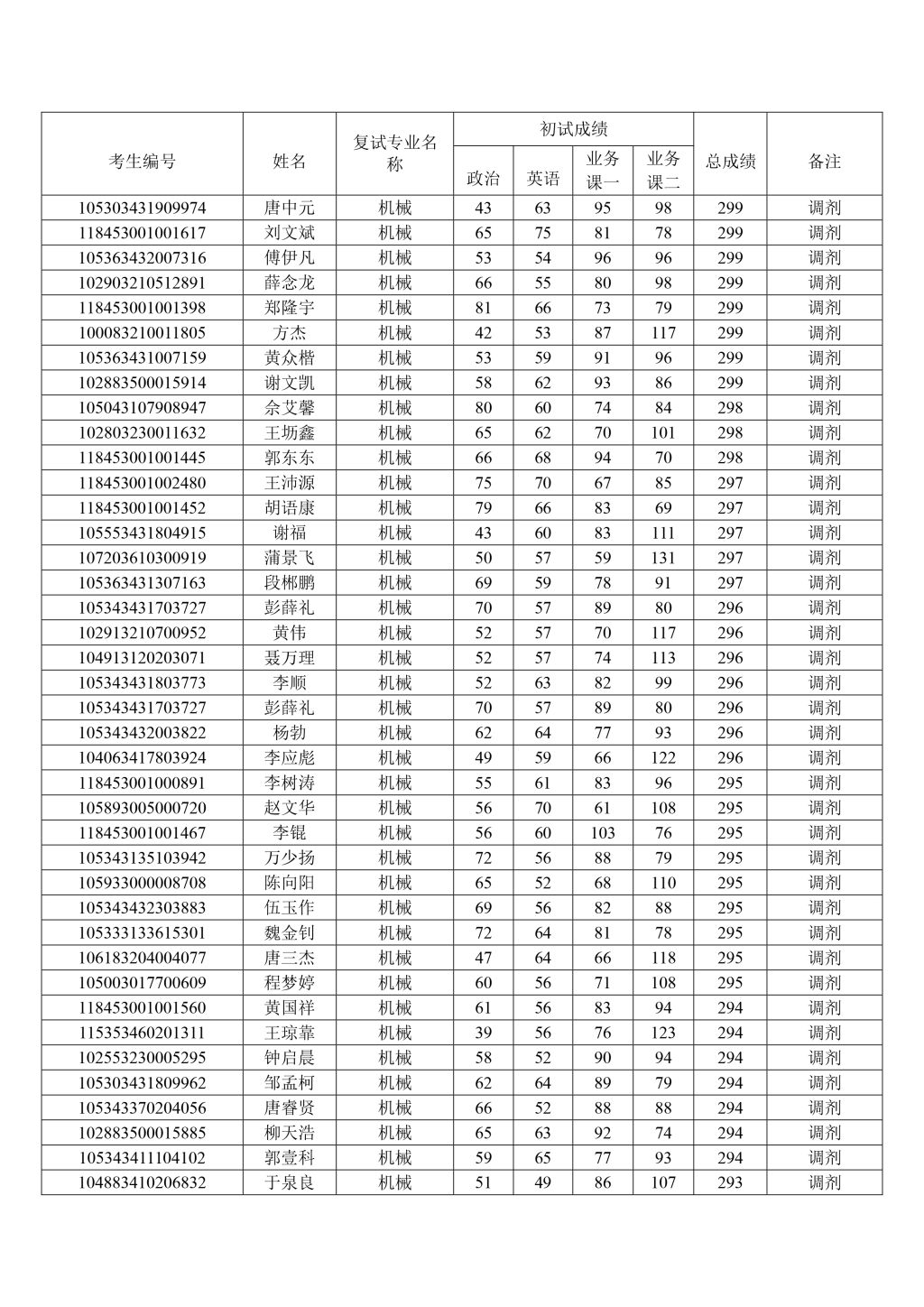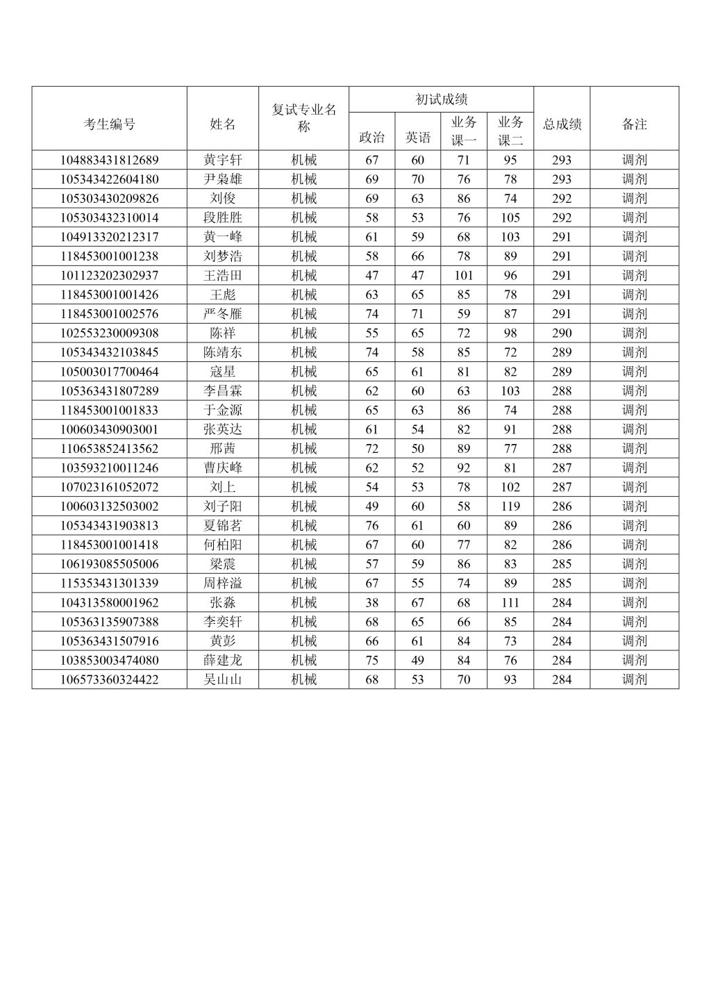 太阳集团tyc539macau2023年硕士研究生调剂复试名单