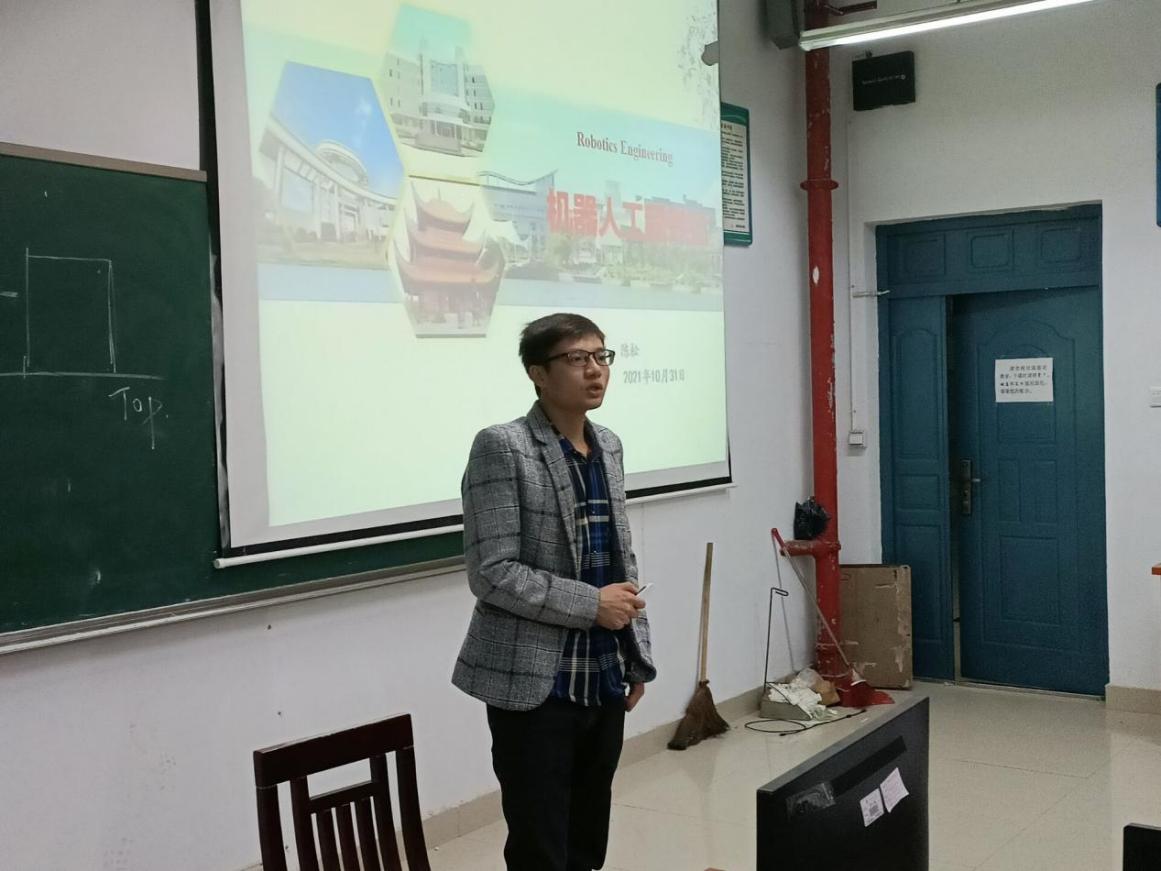 机器人教研室主任陈松重点就机器人工程专业的总体发展和需求阐述了机器人工程专业概况、专业培养方案。陈松从《中国制造2025》中“机器换人”的新兴局面和趋势角度切入,强调了机器人工程专业响应了国家建设需求和前沿技术的发展趋势,致力于培养具备较强实践创新能力、受到初步科研训练的应用型、复合型人才。机器人本科专业岗位要求巨大,拥有良好发展前景,陈松还指明了机器人专业未来四年规划,希望机器人专业同学能够提高自我管理能力,合理规划作息,书写自我精彩人生。
