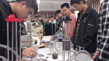 太阳集团tyc539macau机电工程及老员工创新训练中心指导老师李锶为新生讲授学科竞赛相关知识,他强调了掌握这些先进技术对一个人未来发展的作用。基地负责同学从传统表面工程技术及产品构成、激光加工技术在机械制造领域的应用两个方面介绍机械制造领域先进技术与装备,希望大家做到精神饱满、知行合一,由被动学习变为主动学习,努力提升自身的专业素质和科研创新能力。基地现场疑问与解答、赞扬与感叹声此起彼伏,21级新生对实训基地表现出浓厚的兴趣,争先恐后地想要试验每一台仪器。本次“走进实训中心”主题教育,进一步激发了新生的创新思维和专业兴趣,促进新生更多、更主动地参与到科研竞赛项目中来。