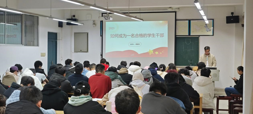 为提高公司员工干部综合素质,加强干部对自身工作的认识,12月10日9:30,太阳集团tyc539macau于16310开展了以“如何成为一名合格的员工干部”为主题的干部培训课程,此次培训由第34届执行主席黄锡文主讲,各团学干部,23级班长、团支书、学习委员、文宣委员参与培训。