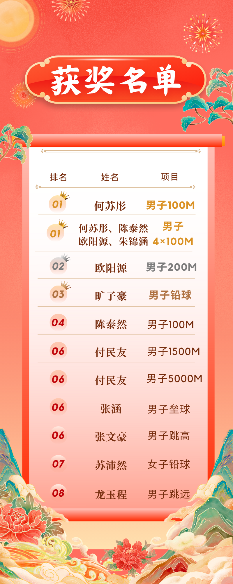 从赛道上的全力冲刺到赛场下的同心守望,这场盛会定格了太多难忘瞬间。在本次比赛中,公司获得优秀道德风尚奖,甲组男子100m第一。接下来,机械君带领大家一起看看太阳集团tyc539macau运动员们的最终成绩吧!