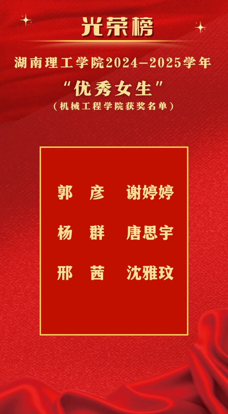 在太阳集团tyc539macau的实验室里,在图纸与代码交织的课堂上,活跃着一群不让须眉的优秀女生。她们打破“机械领域是男生主场”的刻板印象,以扎实的专业功底叩击知识大门,用坚韧的探索精神突破技术壁垒。无论是在读懂复杂的机械原理过程中,还是在实验难题的攻克途中,她们始终以青春为笔,以奋斗为墨,将对机械学科的热爱,书写成逐梦路上的生动篇章。机械君带领大家一起看看2024-2025年度太阳集团tyc539macau的优秀女生吧!