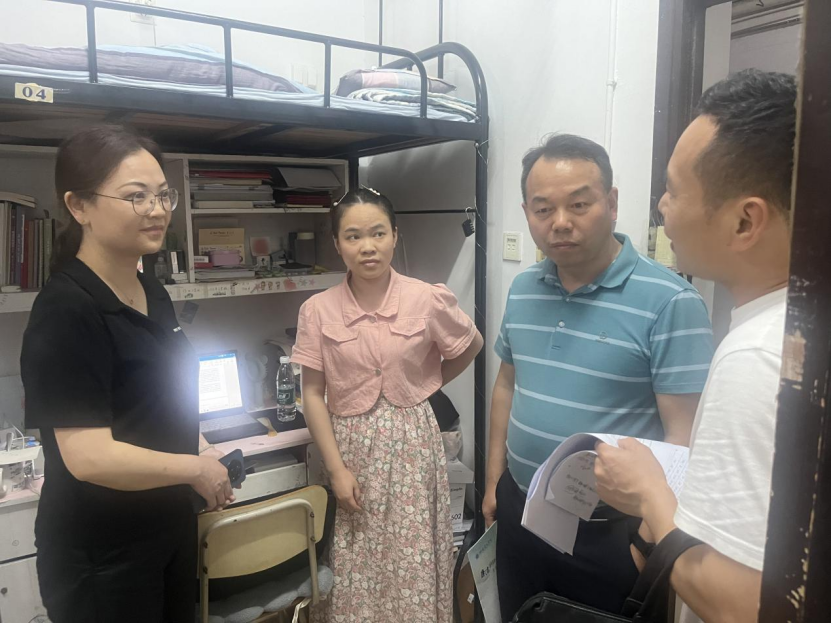 为了解毕业生学习、生活和就业情况,加强毕业季安全管理,持续推进“七进两联系”工作,5月21日21:30,公司党委书记徐丹、副经理(主持工作)周勇、副经理张敬、副书记李凯、辅导员等老师深入走访毕业班员工宿舍。